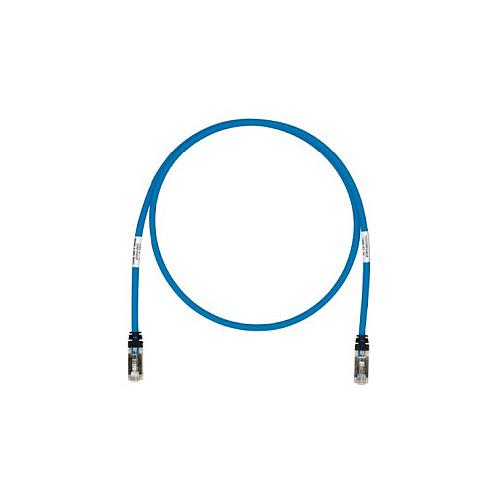 Cordón de parcheo de categoría 6A fabricado con cable 26 AWG. El cordón de parcheo mide 1.5 metros (5 ft) de largo. Azul.